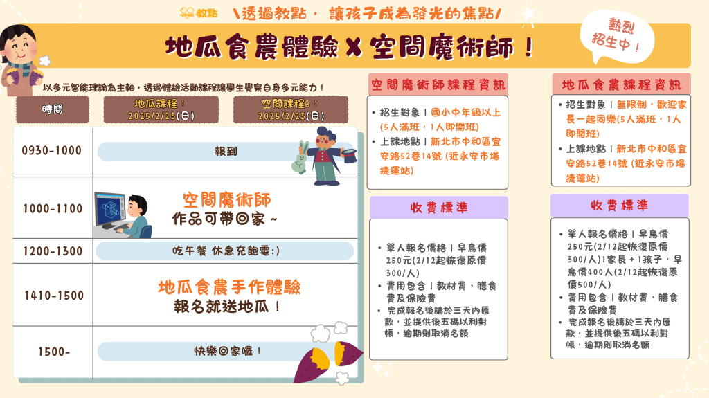 空間魔術師課程適合四~六年級的學生,能在進入國中前對於空間概念有更多的理解!