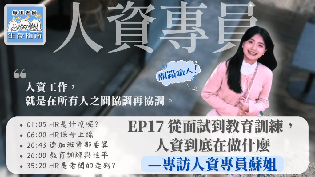 「你要有心理準備,HR基本上是裡外不是人。」蘇珈儀坦言,「有時候員工會覺得HR是站在公司那邊的,但公司也可能會認為HR太過偏向員工。這種時候,你必須找到一個平衡點。」