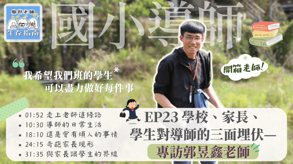 我們專訪到目前任教於台北市、已有四年高年級導師經驗的郭昱鑫老師,聊聊他如何從一個夢想成為棒球選手的孩子,走上教育這條不回頭的路,以及如何在「學校、家長、學生」三面夾擊下,找到自己的定位與快樂。