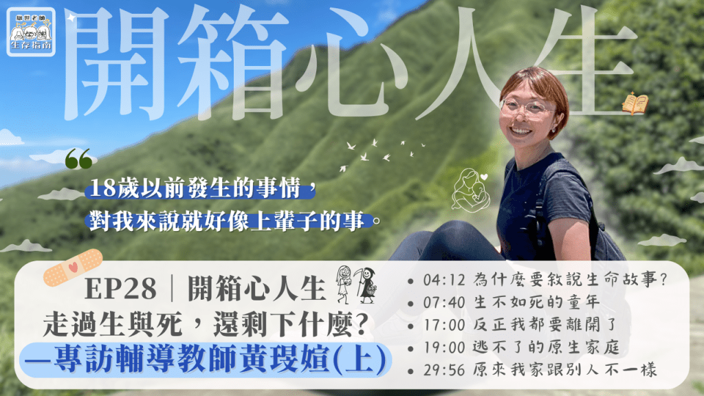 下一篇,我們將跟著琝媗老師走進她的青春期、進入大學,了解她如何在創傷中覓得力量,並逐步找到「成為輔導老師」的那條路。走過死蔭幽谷,她究竟靠什麼選擇繼續前行?