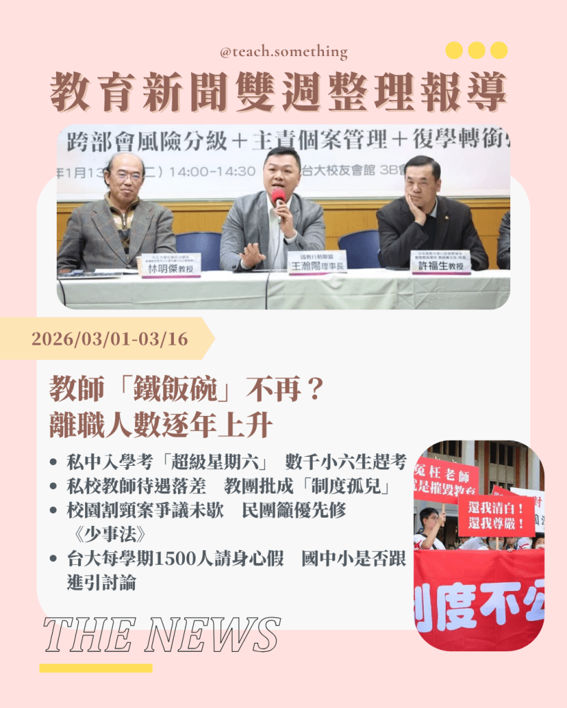 #教育 #教育時事 #教育現場 #教育議題 #升學壓力 #教育選擇 #家庭教育 #教師離職 #教師職涯 #私校教師 #教育勞動 #少年事件法 #校園安全 #司法改革 #身心調適假 #學生心理健康 #校園支持