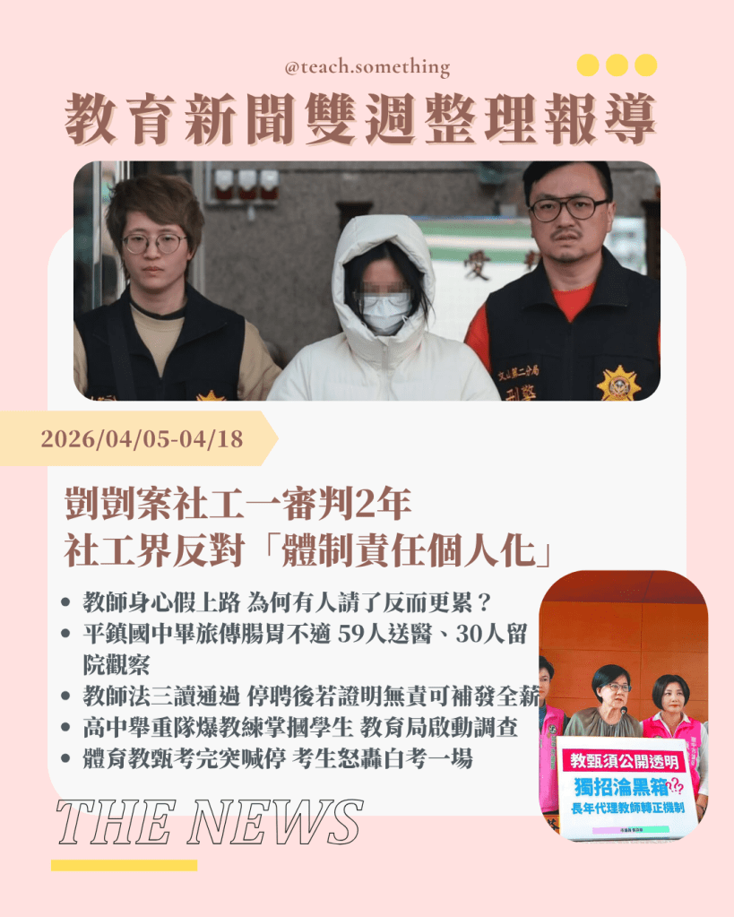 #教育 #教育時事 #教育現場 #教育議題 #教師身心假 #校外教學 #食品衛生 #剴剴案 #兒少保護 #社工困境 #社會安全網 #冤案補償 #教師權益 #校事會議 #體罰爭議 #教甄爭議 #考試公平